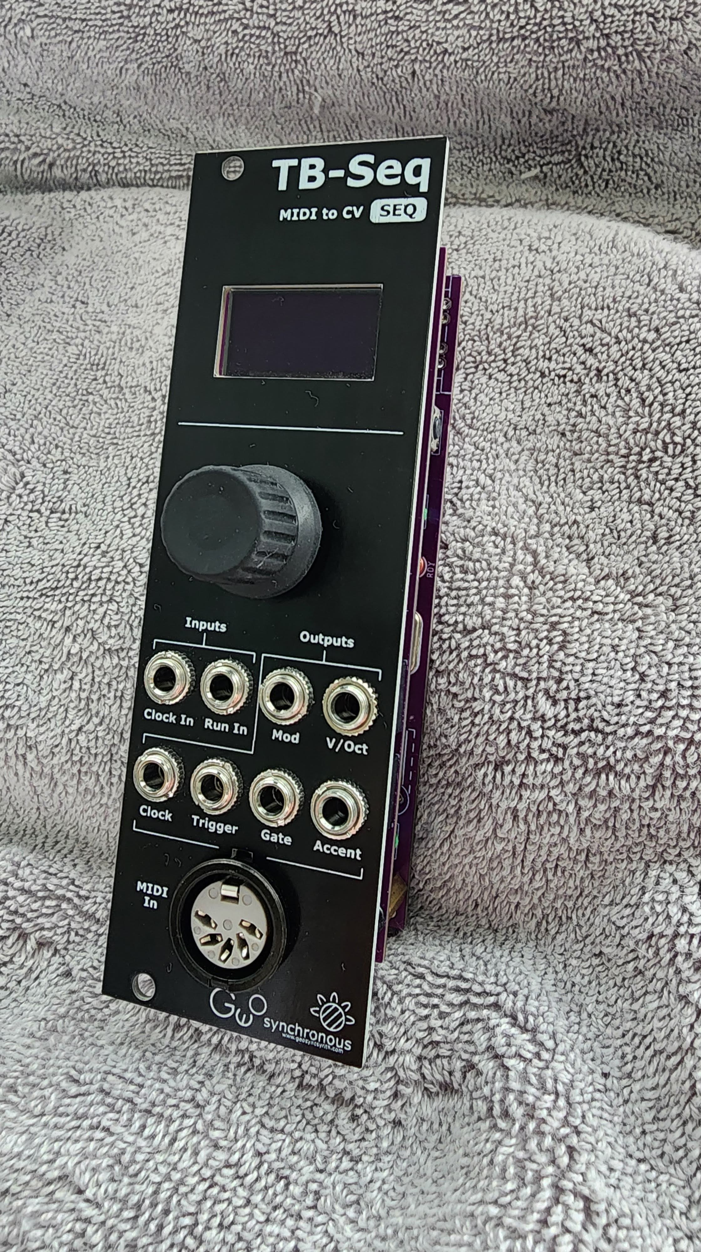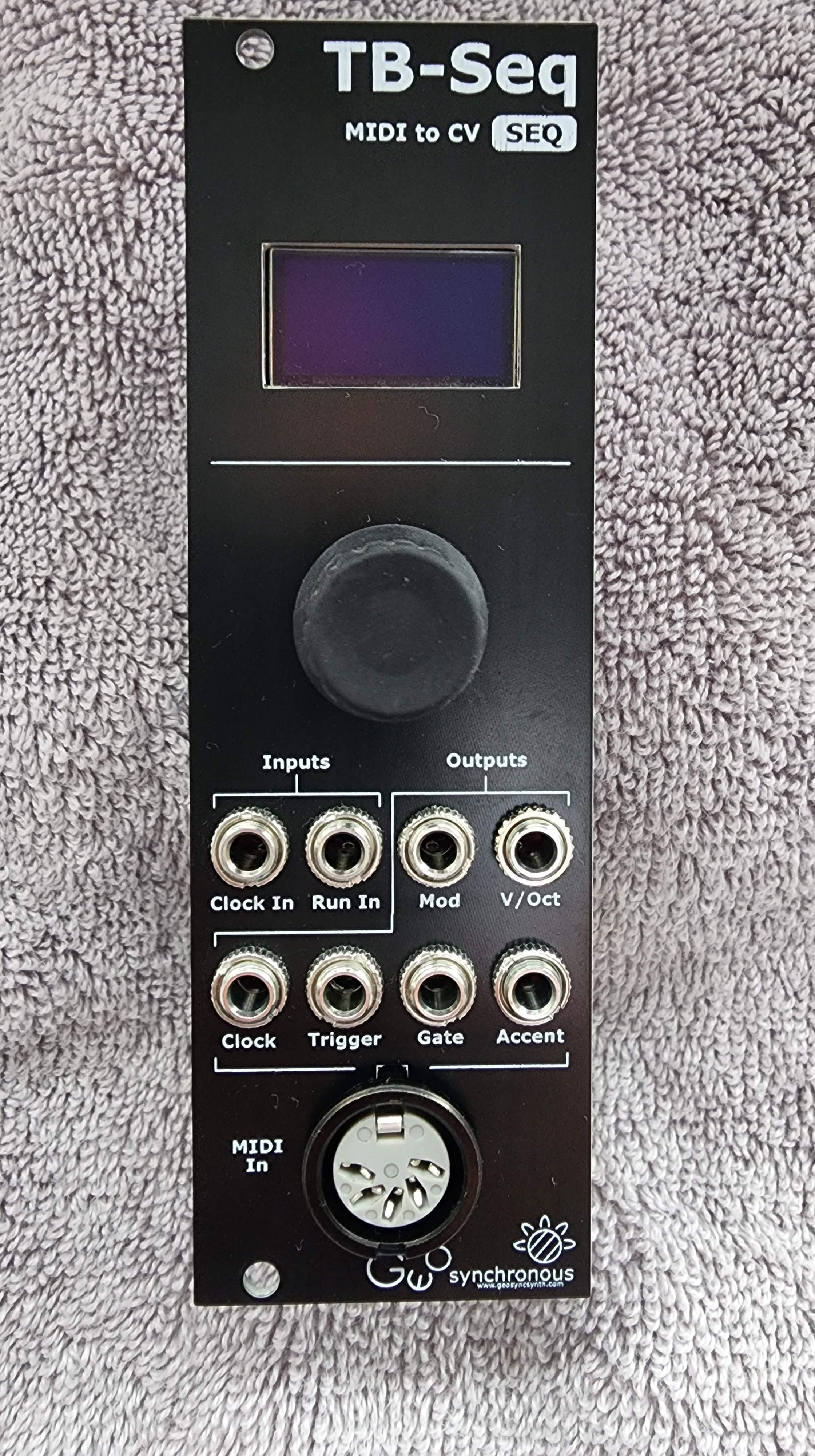 The TB-Seq Eurorack module and integrated MIDI interface in the Ge0synchronous desktop semi-modular synthesisers combine standard MIDI note to CV V/Oct, gate and trigger conversion as well as MIDI to CV clock with configurable PPQN (pulse per quarter note) – both in and out.