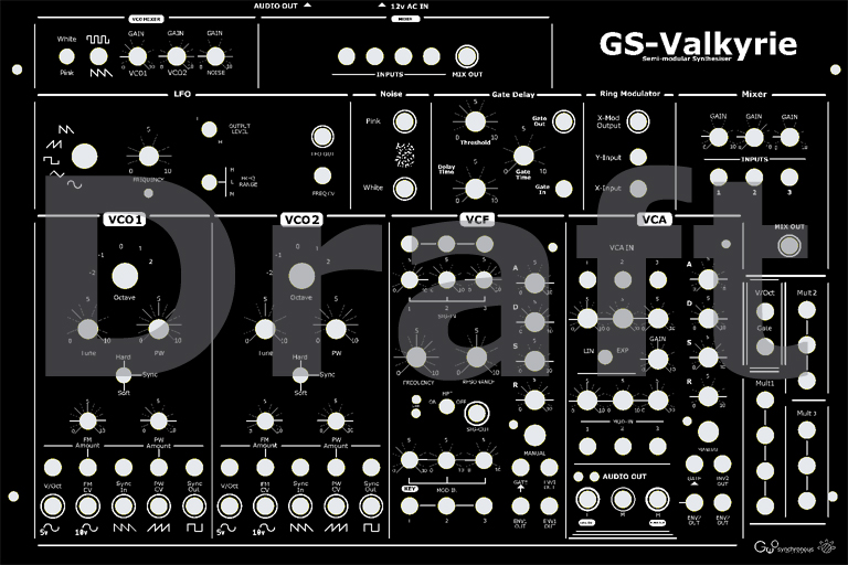 The GS-Valkyrie is a slightly larger format desktop stand alone synth built from the various modules available in the GS Series 1 range.
