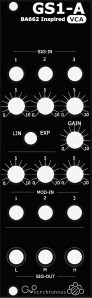 The GS1-A provides a selectable linear or exponential VCA using the differential BA662 op-amp.